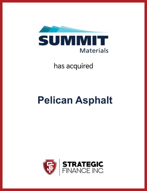 Pelican Asphalt (blending and distribution terminal) in Houston was acquired by Summit Materials