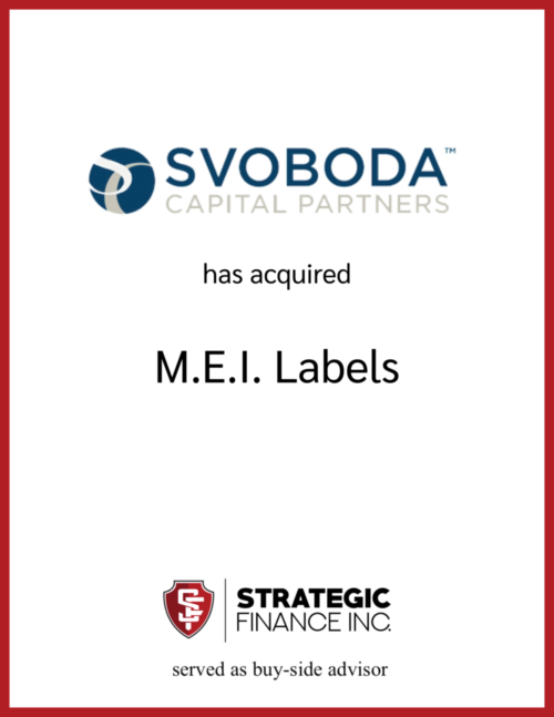 MEI Labels (manufacturer of pressure sensitive label products, tags and banners for the food industry) was acquired by Svoboda Capital Partners.