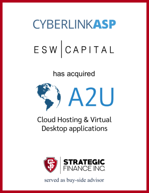 Applications2U Cloud Hosting (virtual desktop applications) was acquired by ESW Capital/Cyberlink ASP